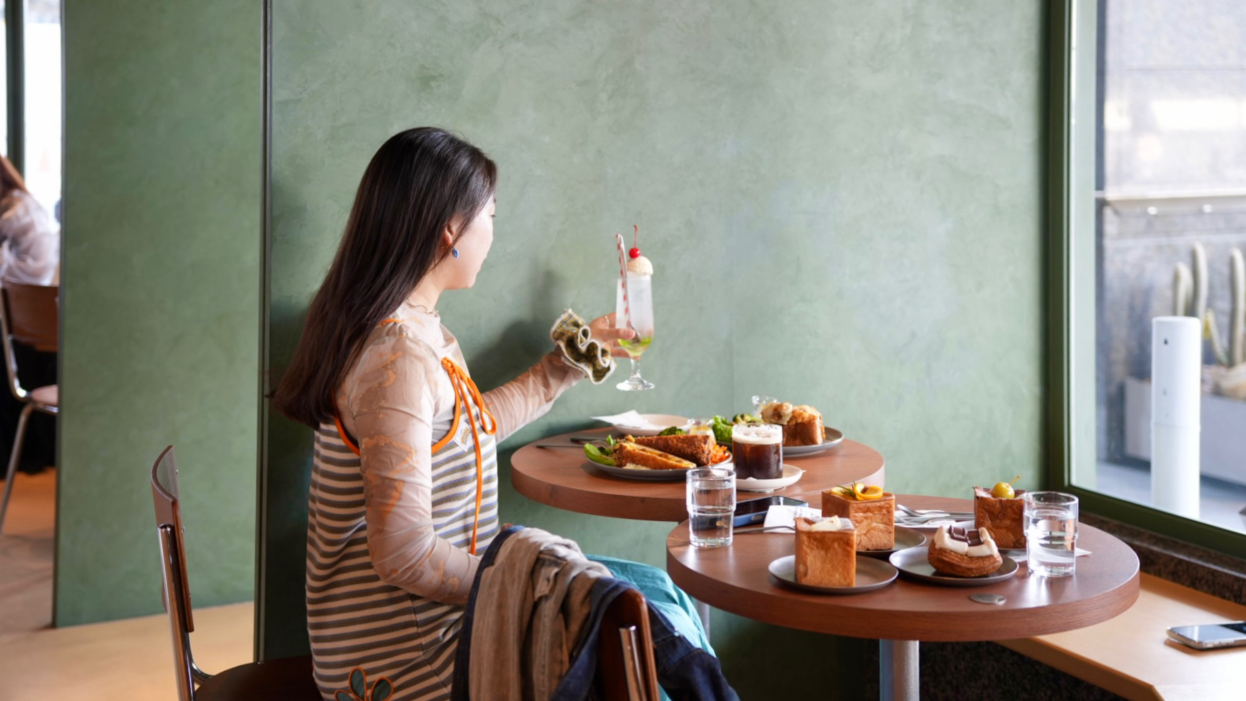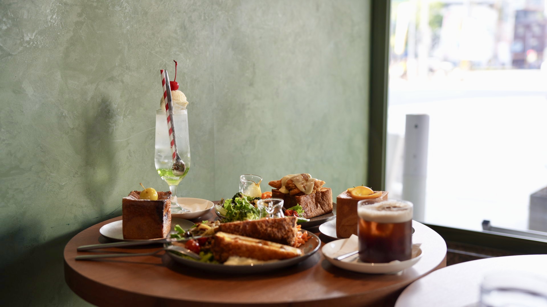 日式早午餐當然有日式飲料「青蘋果冰淇淋蘇打」,拍照打卡很可愛唷!