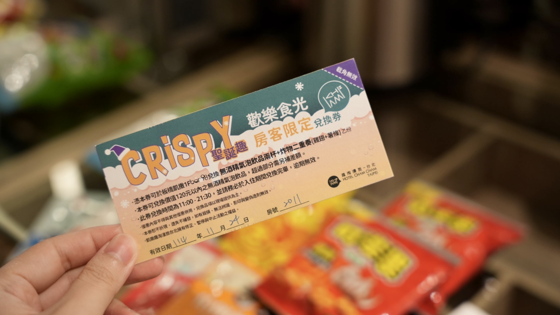 「Crispy 聖誕趣住房專案」還會贈送BAR98歡樂食光餐點兌換券,這是在凱薩飯店一樓的酒吧,晚上看完耶誕城剛好可以回來吃宵夜,也可以選擇下午來吃甜點唷~