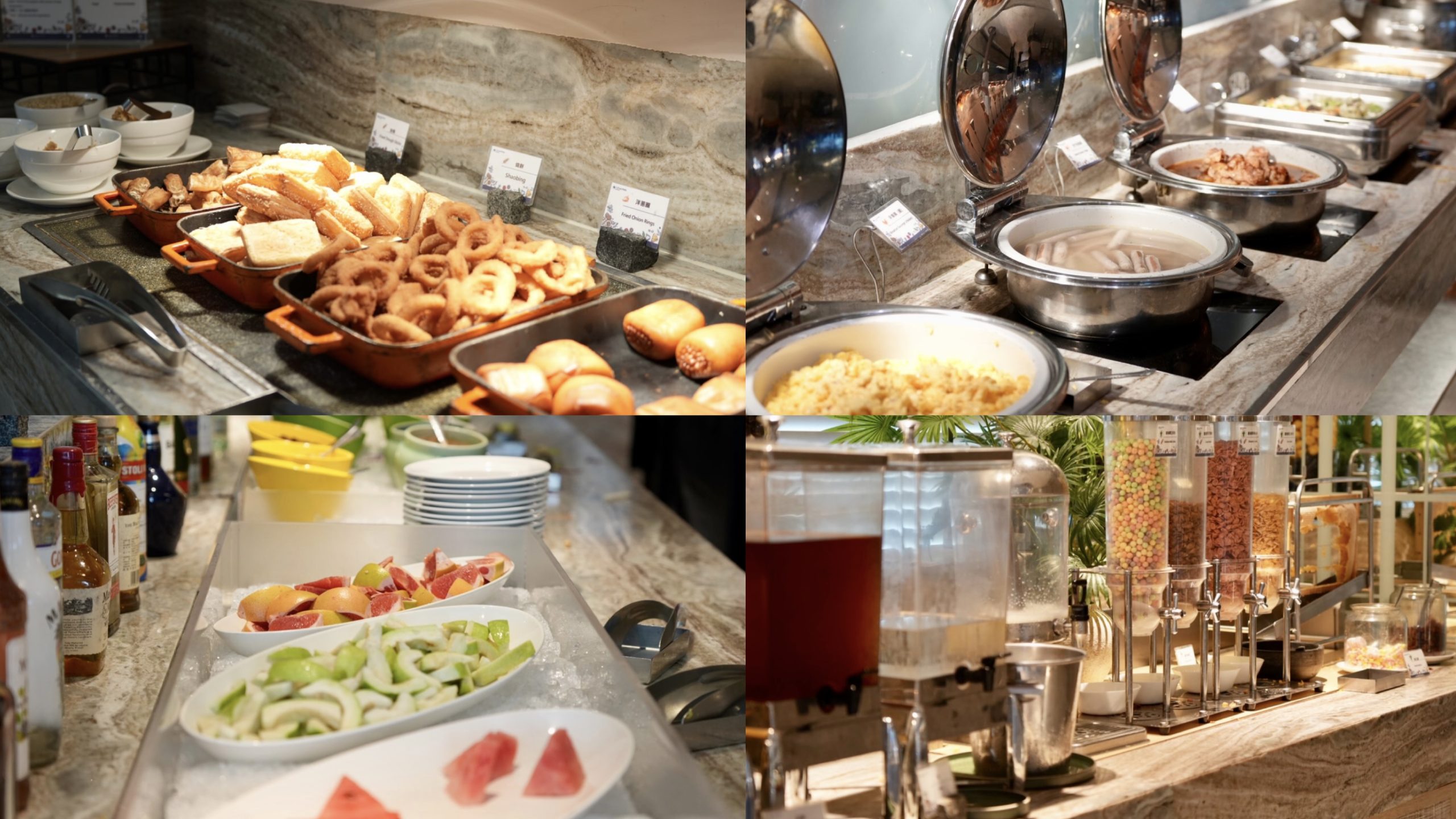餐點應有盡有我覺得還蠻豐盛,有我喜歡的燒餅油條,還有炸銀絲卷,也有粥品、豆漿、現燙的乾麵等台式早餐選項,當然西式的炒蛋、香腸、薯餅、優格、牛奶麥片等等也都有~早餐用餐時間是6:30-10:00~