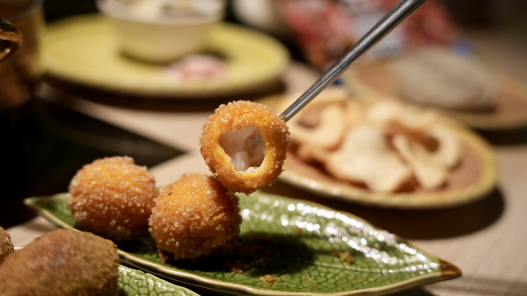 每次來我都會加點他們家的炸物,尤其是爆漿蝦球和芋泥球真的很好吃,是爆漿蝦球中間小下去會爆漿,外皮酥脆鹹甜口味,大人小孩都會愛!