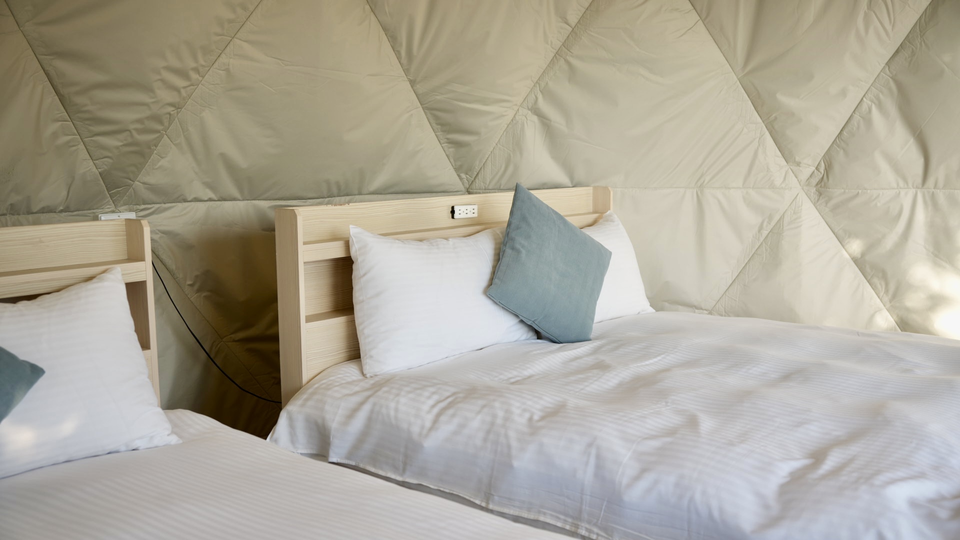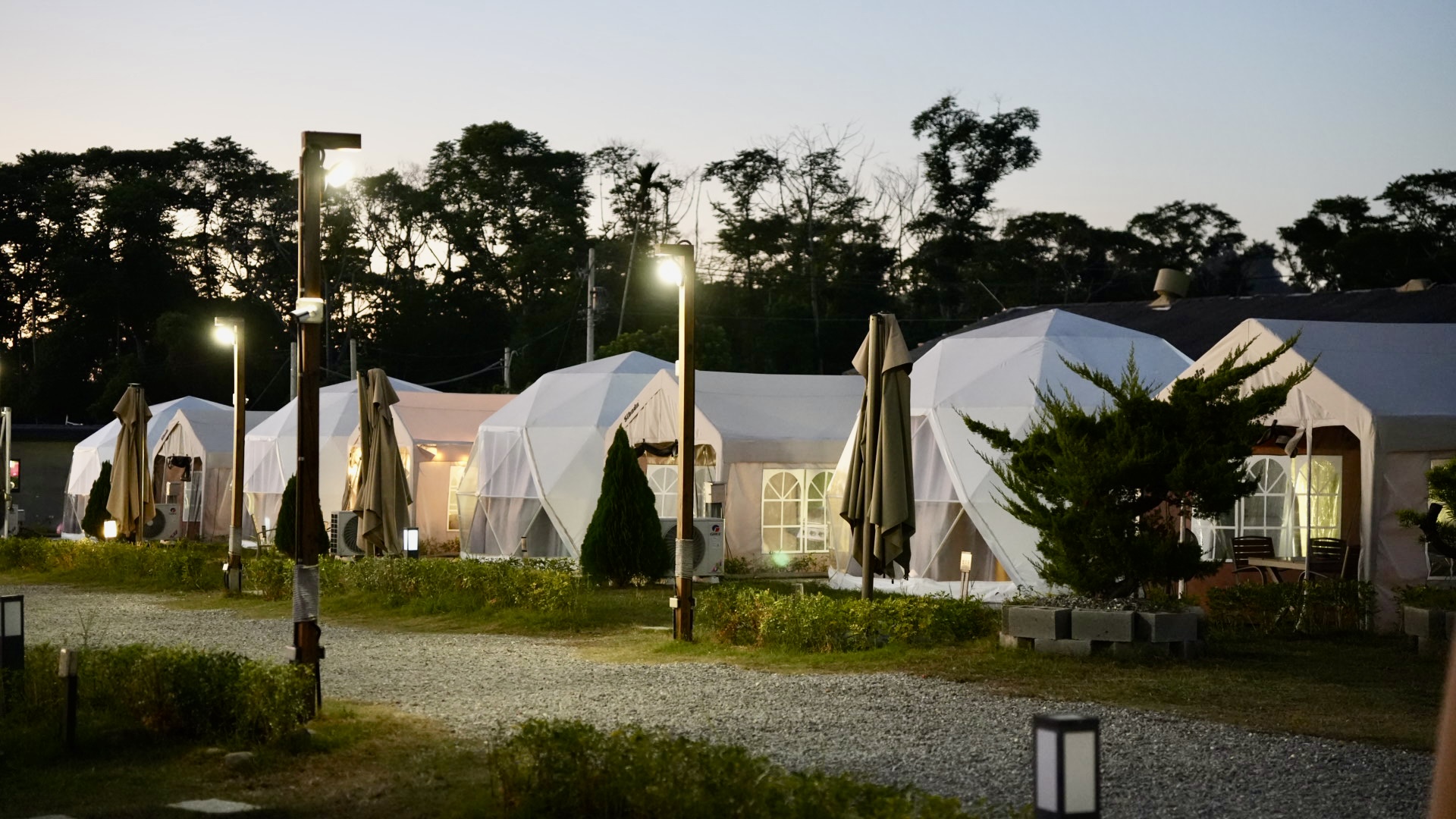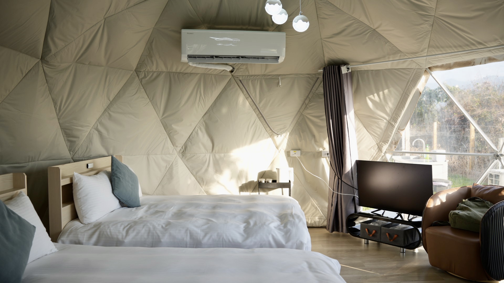 營區內都是我最喜歡的豪華球形帳篷,球形帳的空間較寬敞,裡面有兩張雙人床,住四個人剛剛好,有透明大面積落地窗,在帳篷內可以欣賞夕陽美景及夜景。