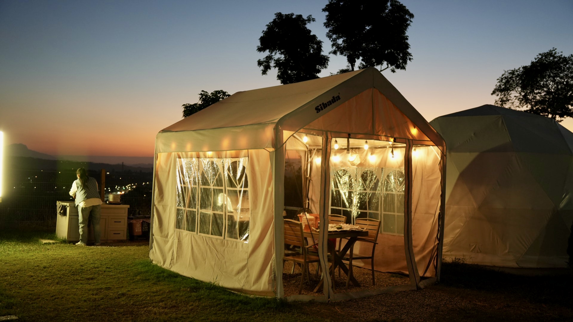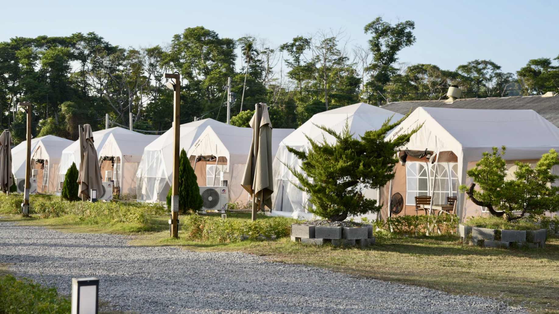 歸樸森活豪華露營位在嘉義阿里山山腳下,不用開山路即可抵達,營區備有停車場,只要拎著行李就能入著,免自搭帳篷,住宿環境和飯店一樣舒適,整個營區有寬敞的活動空間,白天可以遠眺市區美景,傍晚有夕陽,晚上有夜景,抬頭仰望可以看到星空,在歸樸森活可以放慢步調,被大自然療癒了~