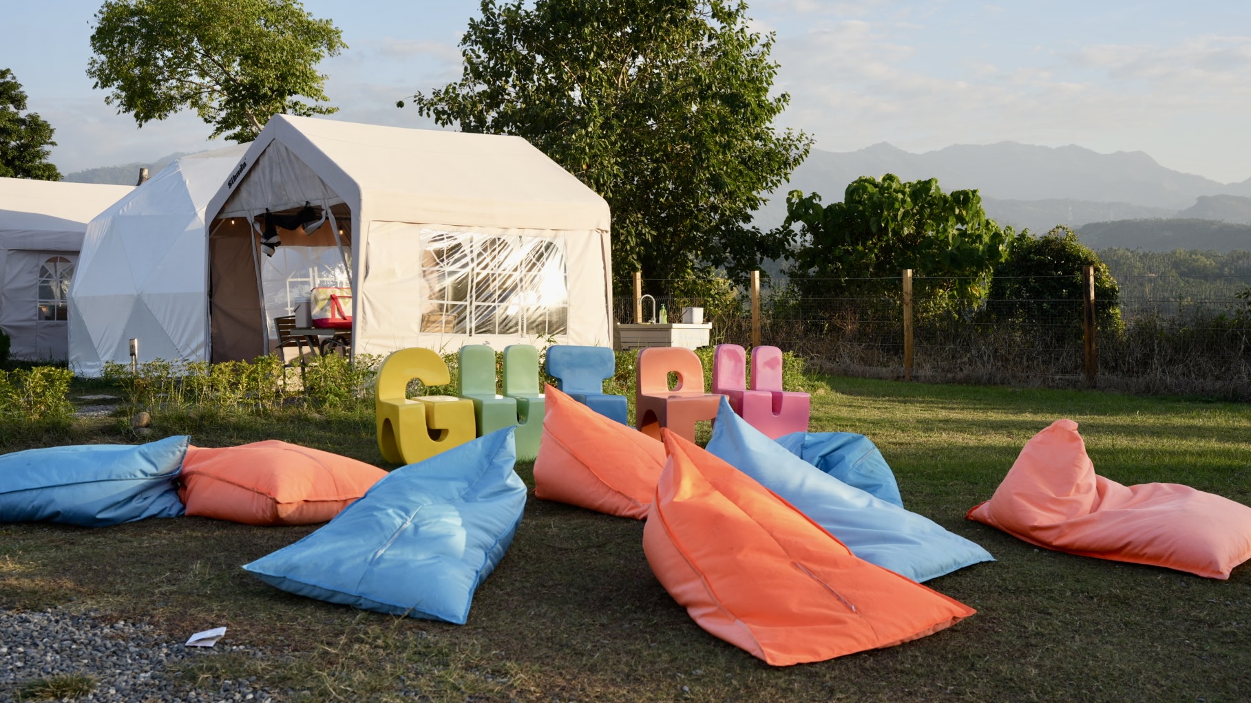整個營區有許多可愛的角落,很適合一群朋友、家人來露營,可以跟朋友一起躺在懶骨頭上聊天看星空,也可以大家坐在大帳篷裡聊天~