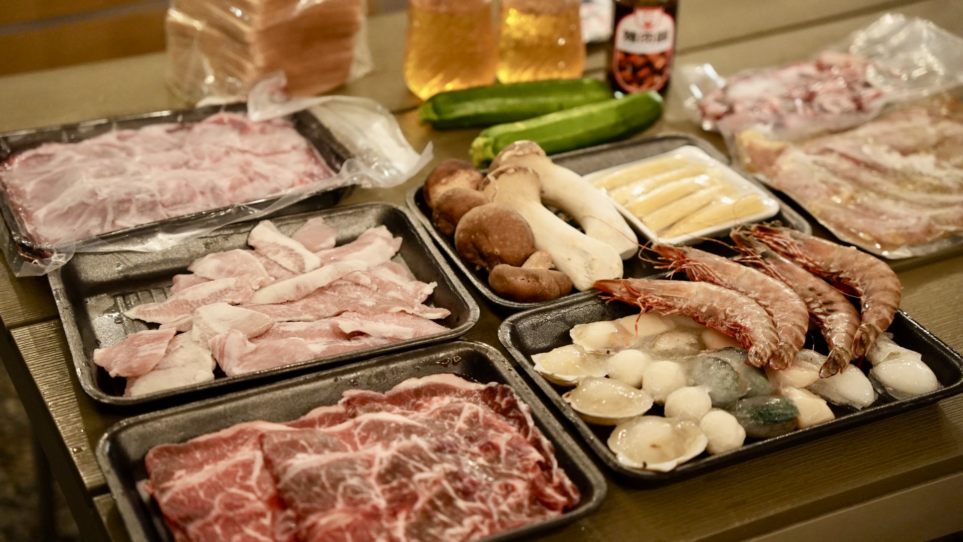 今天的食材超澎派,有超大黑虎蝦、生食級干貝、鮑魚、扇貝、牛排、豬排、雞腿、骰子牛等等,海陸全餐超級豐盛,四人烤肉組價位是$2200元,不用自行準備食材非常方便,大推👍(詳細資訊請洽詢官網)