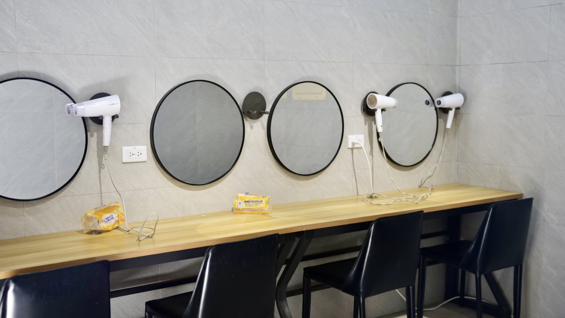 盥洗室在整個營區的中間,距離每個帳篷都不會太遠,提供24小時熱水,想要很晚洗澡或一大早洗澡都沒問題,盥洗空間為乾濕分離,裡面有廁所、淋浴間、梳妝台、吹風機。