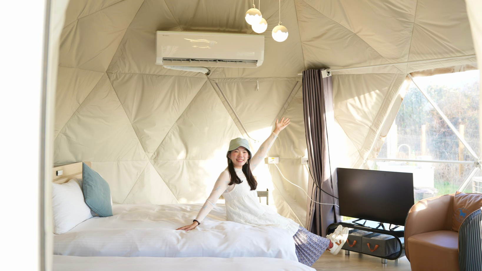 每個帳篷裡面都有冷氣,夏天不用擔心會熱,整體的住宿體驗就像住飯店一樣,裡面應有盡有,唯一不同的是盥洗室在外面唷~