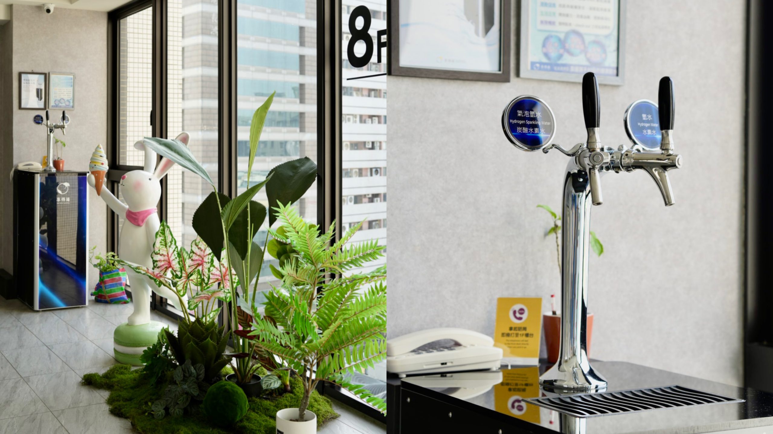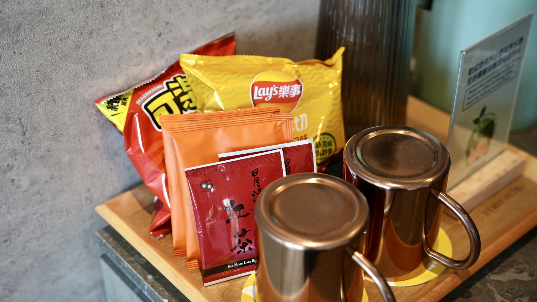 房間內不提供瓶裝水,有提供冷水壺、水杯,每一層樓都有飲水機,還有提供氫氣水、氣泡氫氣水,很喜歡綿密的氣泡水呢~房間內有提供咖啡茶包、迎賓飲和餅乾。