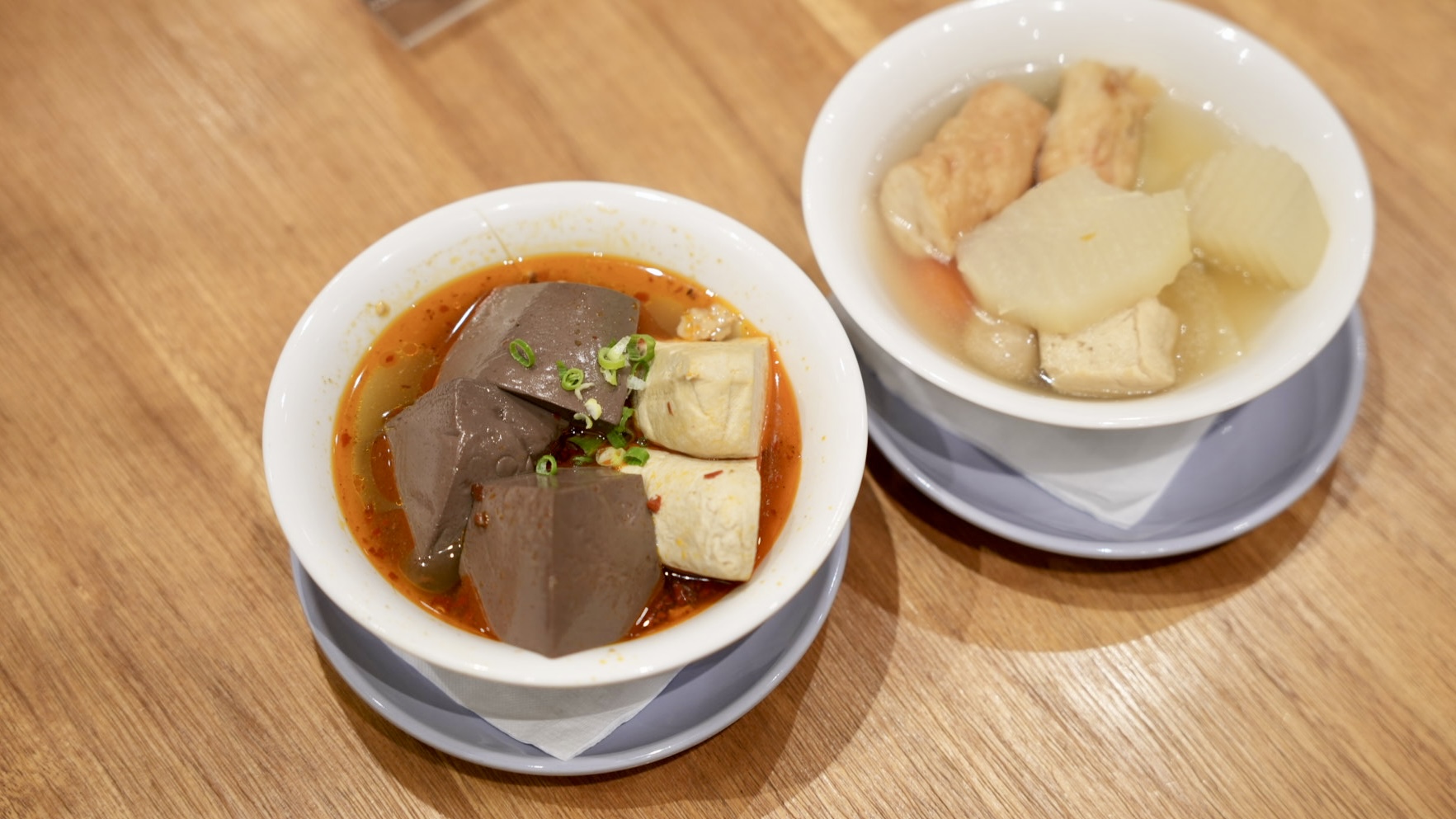 我們今天選擇麻辣燙和關東煮,逛街回來還能吃到熱騰騰的宵夜,真的好幸福,如果肚子很餓建議點滷肉飯,麻油雞裡面是整隻的雞腿唷!