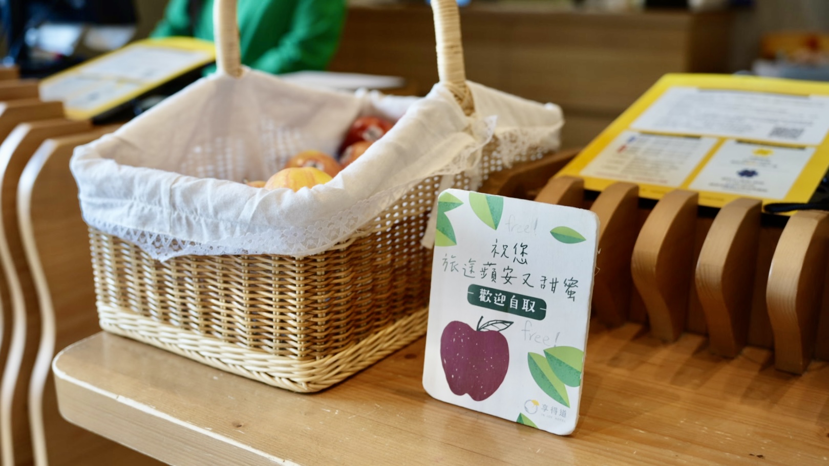 吃飽喝足準備11點退房,到櫃檯退房時飯店送了一顆蘋果,祝旅途平安又甜蜜,真的覺得又驚又喜,太可愛了🫶🏻謝謝享得道給我們一個美好的住宿回憶:)