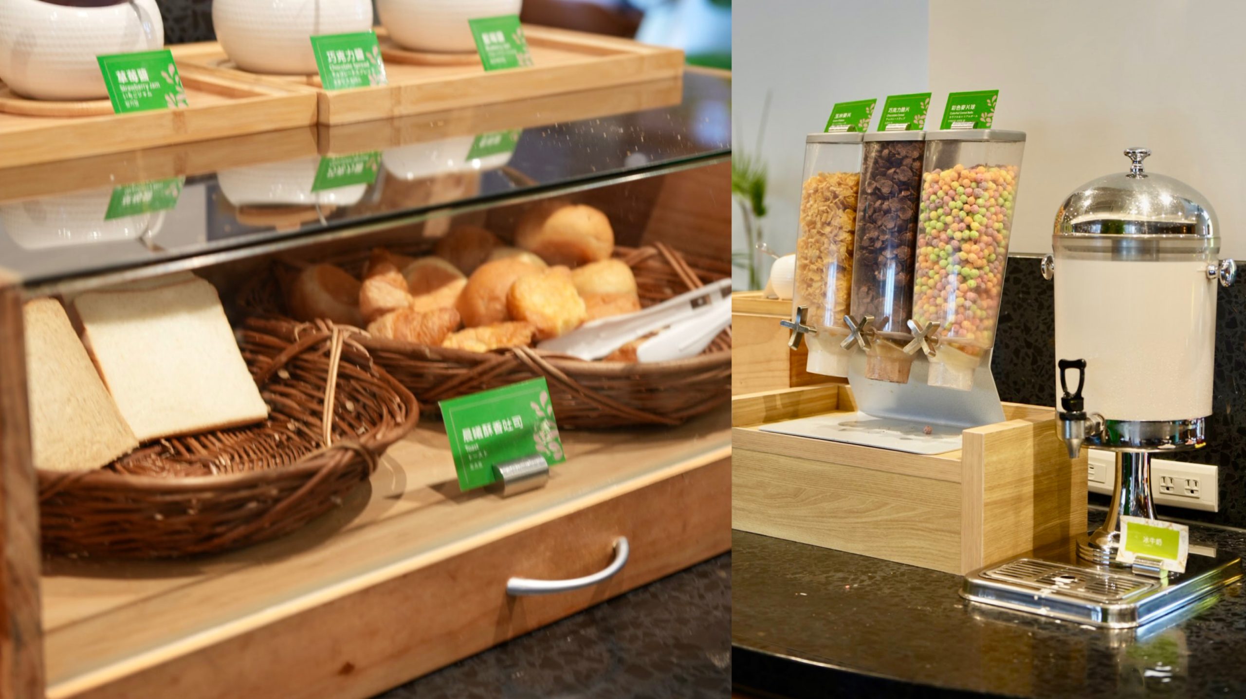 吐司、可頌、奶油餐包應有盡有,推薦奶油餐包,烤過後很好吃,旁邊還有麥片可以配牛奶,都是小朋友會喜歡的口味。
