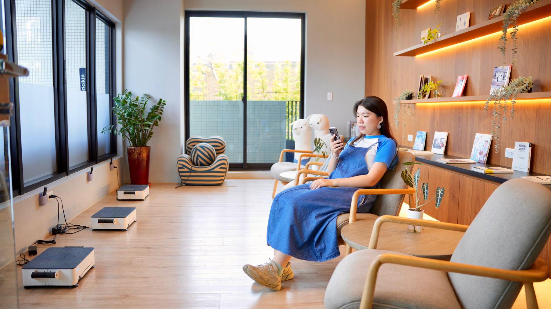這間是很特別的律動閱讀室,旁邊有一排「B Green律動機」,站在上面享受律動的樂趣,小朋友會玩得很開心!