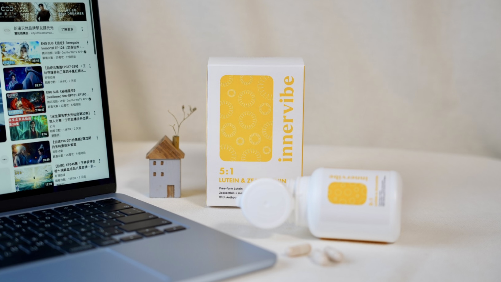 保養要趁早,現在大家都是低頭族,我們家從年輕人到長輩都是3C產品重度使用者,推薦大家每天都要補充葉黃素,選擇擁有「黃金比例」的innervibe葉黃素一粒就足量,更有效率!