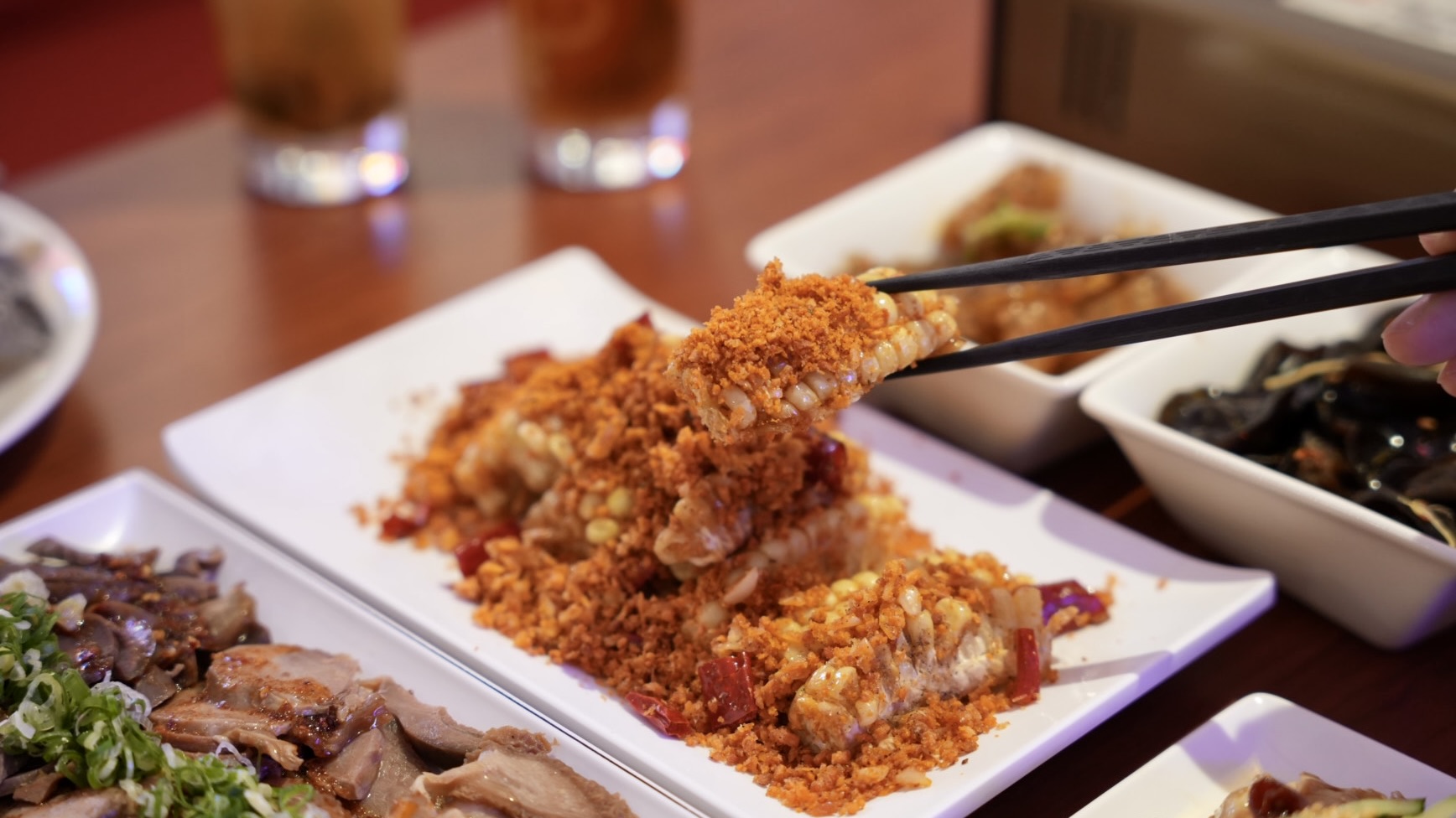 三道必點創意料理:避風塘炸水果玉米、避風塘炸蘿蔔糕、麻香手撕雞,這三道真的超好吃,除了雞煲鍋之外,今天的前三名就是他們了!水果玉米非常甜,配上金黃酥脆的避風塘,鹹香辣好好吃!