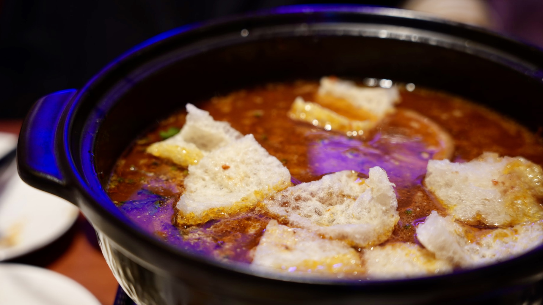 台灣人吃火鍋喜歡加「澎皮」,也就是炸豬皮,吸飽湯汁的炸豬皮,入口要小心燙,真的會噴汁,煮越久會越香,軟Q的口感好美味~不用擔心會油膩,吃起來不油唷!