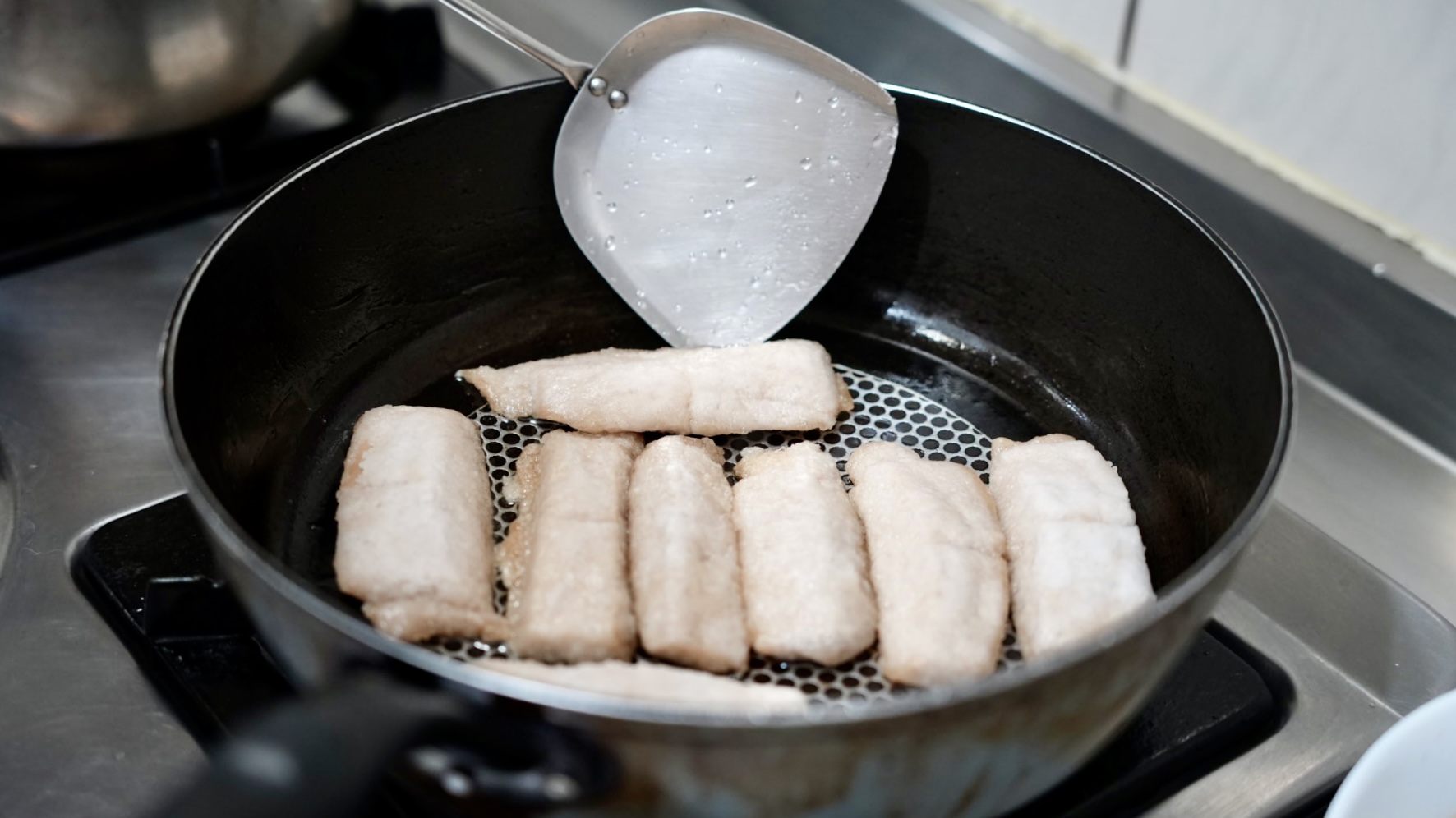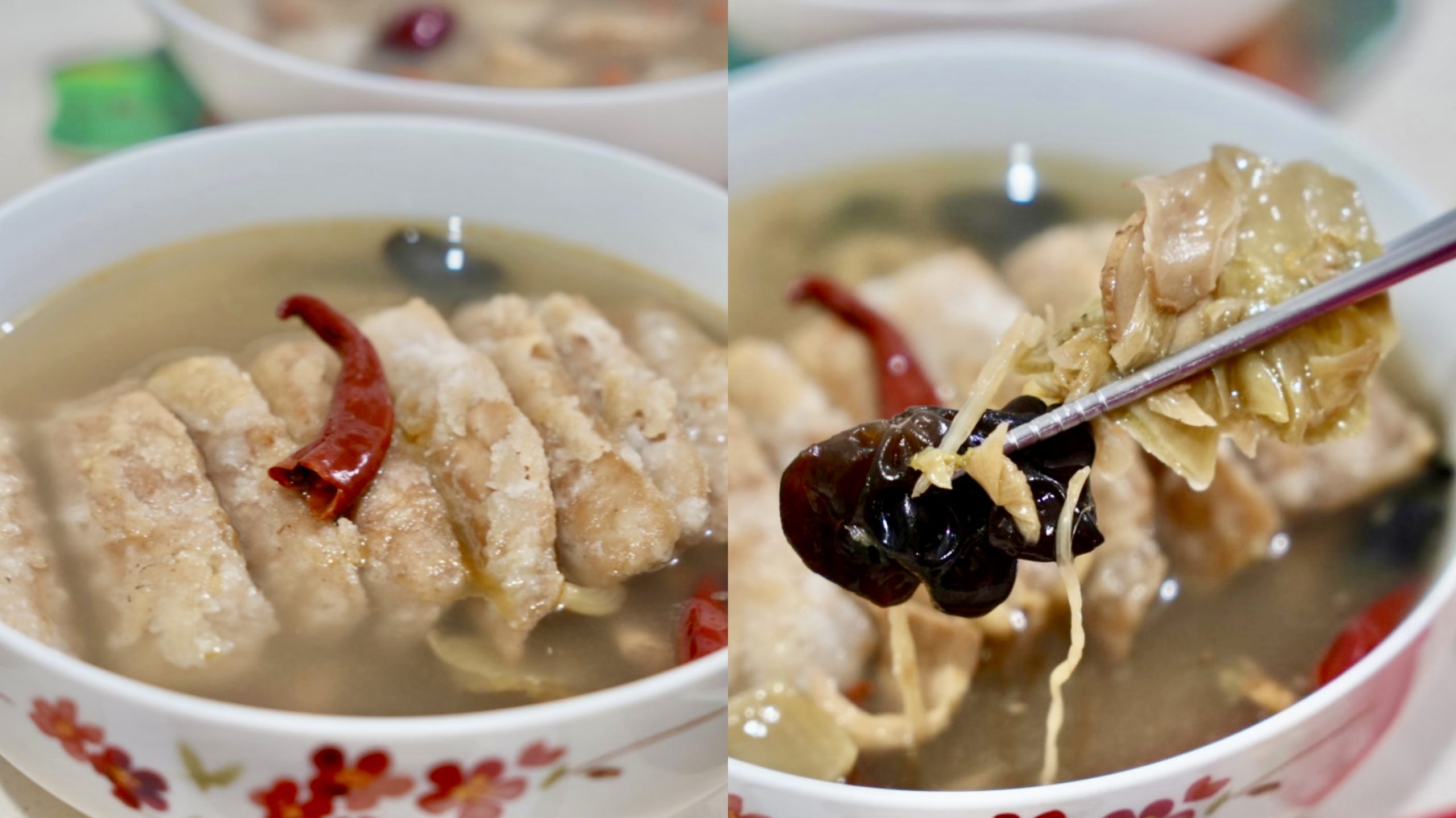 特製的素魚片記得要先煎過更好吃,平時不愛吃素料的家人,都讚不絕口,主廚自製的素魚片,口感軟Q又很入味,真的超級逼真~搭配酸菜爽脆口感,再來一口濃郁的湯底,真的超級開胃,讓人配上白飯一口接一口!