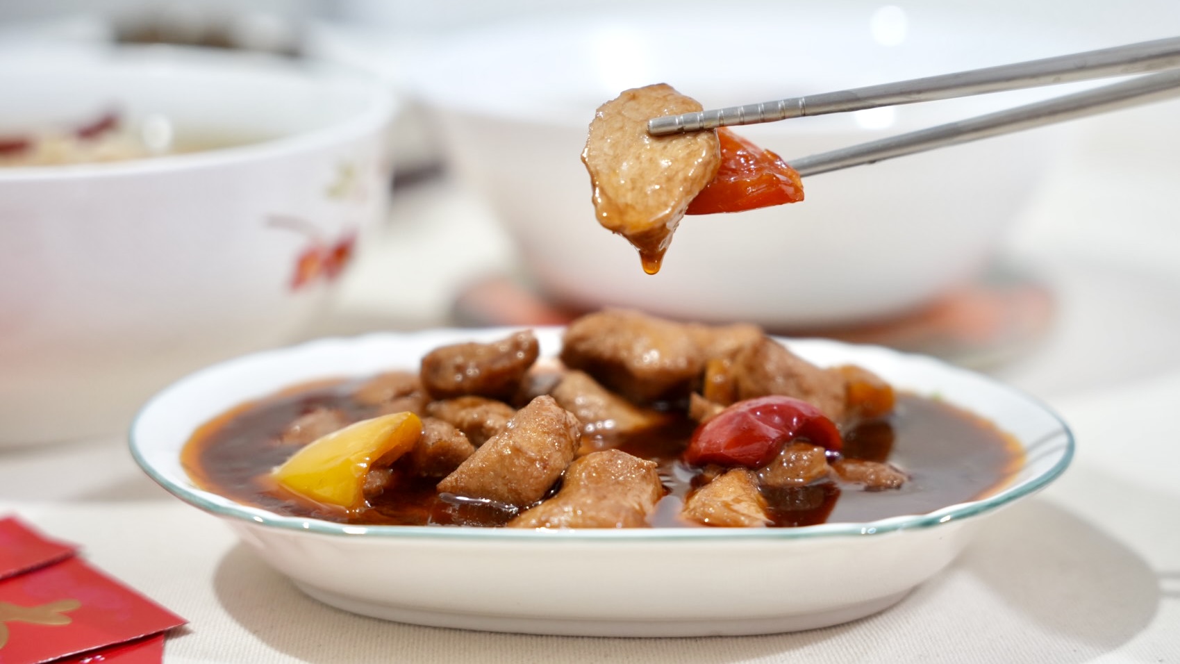 雞丁軟嫩口感很棒,搭配甜椒色彩鮮豔又爽脆清甜,最厲害的是酸甜的糖醋醬,番茄香氣濃郁,小朋友最愛拌飯一起享用,我們家挑食的小孩,每次只要有糖醋雞丁就可以乖乖吃完一整碗飯,超推薦給家裡也有挑食小朋友的家庭!
