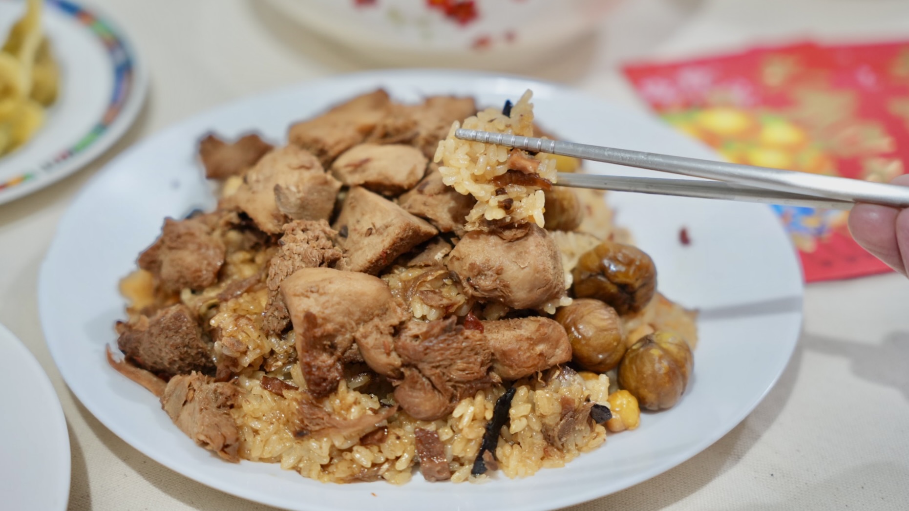 我本身很愛吃油飯,這份油飯真的完全不輸給大餐廳的油飯,入口醬香食材有鍋氣,每一口都能吃到滿滿的配料,栗子很大顆又甜滋滋、猴頭菇口感Q彈很美味,油飯有一點點小辣,更開胃更涮嘴,是一份讓人吃了會愛上的油飯,超級推薦!