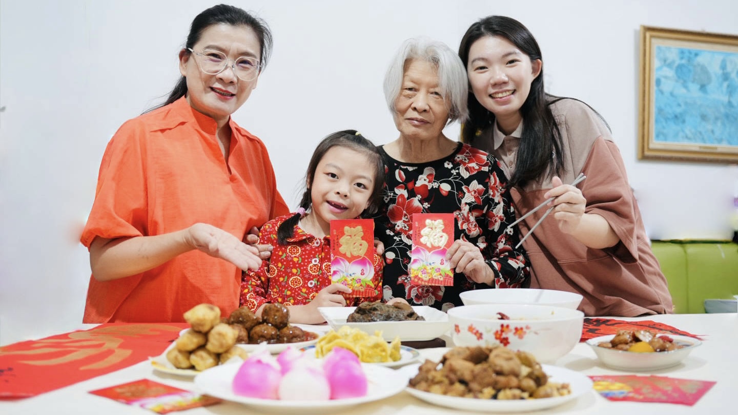 過年桌上一定要有金元寶,祈福新的一年發大財,林聖智主廚監製推出的「蔬福金元寶 」,過年限定超可愛的金黃色水餃,非常喜氣洋洋,阿嬤表示非常滿意,今年全家都會賺大錢!