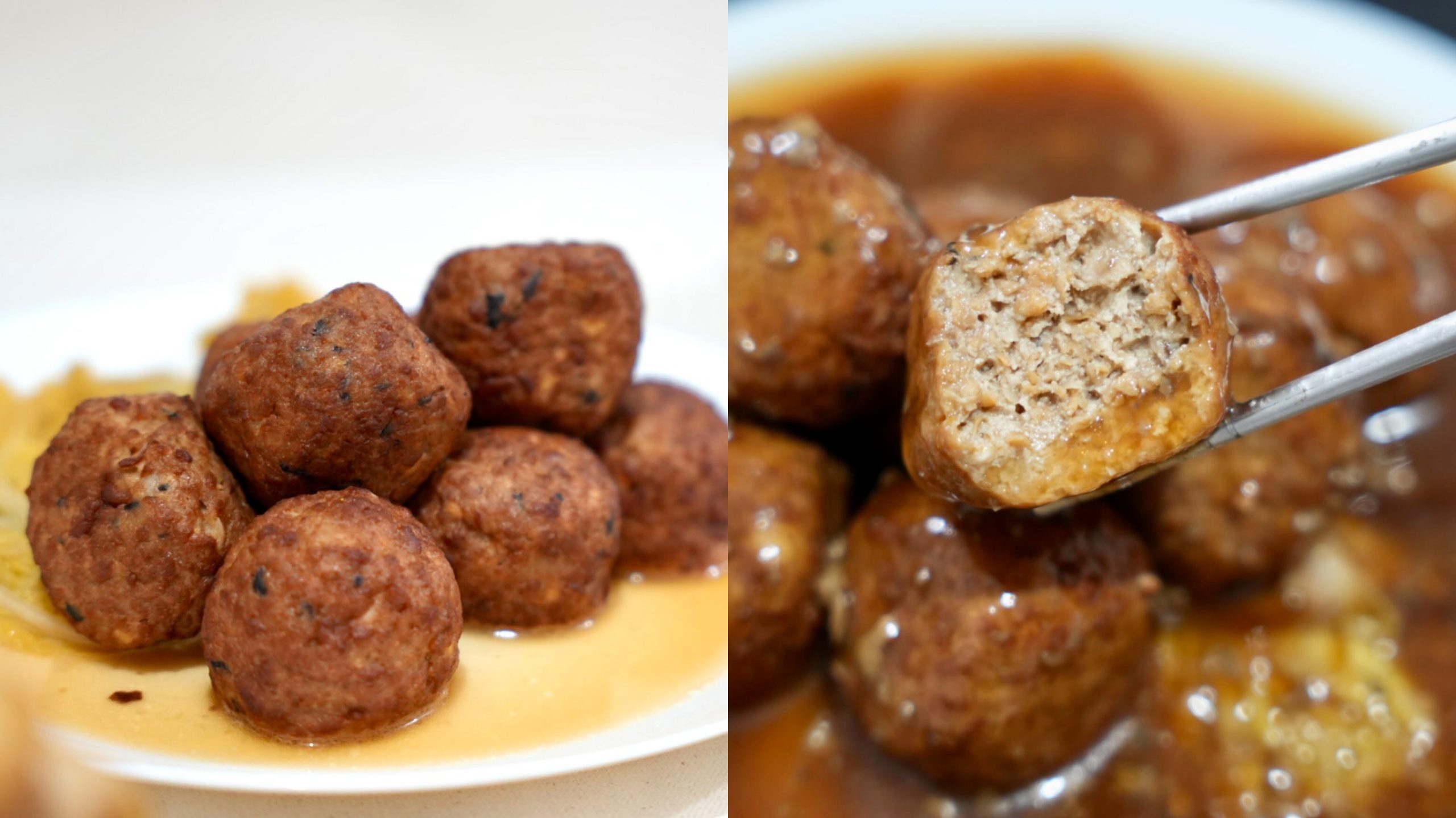 過年吃圓滾滾的「事事如意獅子頭」,象徵團圓與圓滿,也是年夜飯必吃的菜色,這一包裡面有8大顆獅子頭,份量很大剛剛好一人一顆,獅子頭口感軟嫩Q彈,吃起來有肥肉瘦肉的感覺,完美比例非常美味,一口咬下很滿足,溼潤的口感真的好讚。這道菜的靈魂是特製的獨門醬汁,醬香十足、鹹甜風味超級下飯唷!