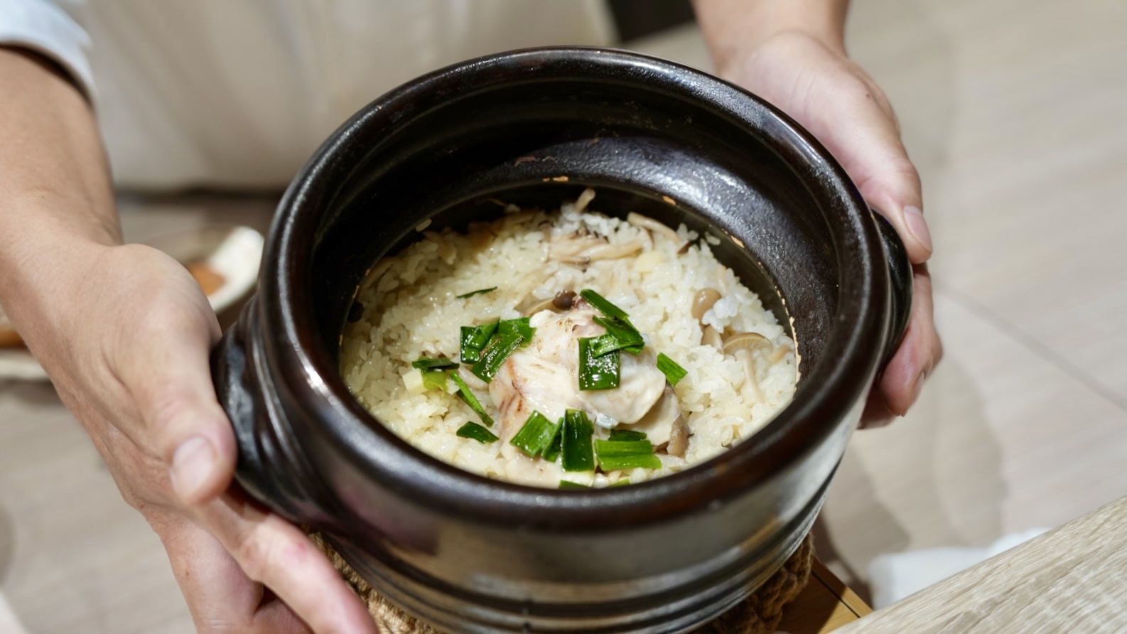 最後的鹹食是「釜飯」,每一組客人會獲得自己的一甕釜飯,每人大約可以分到兩碗飯量,我到這個環節已經吃不下兩碗飯,但是男生的食量是沒問題的。