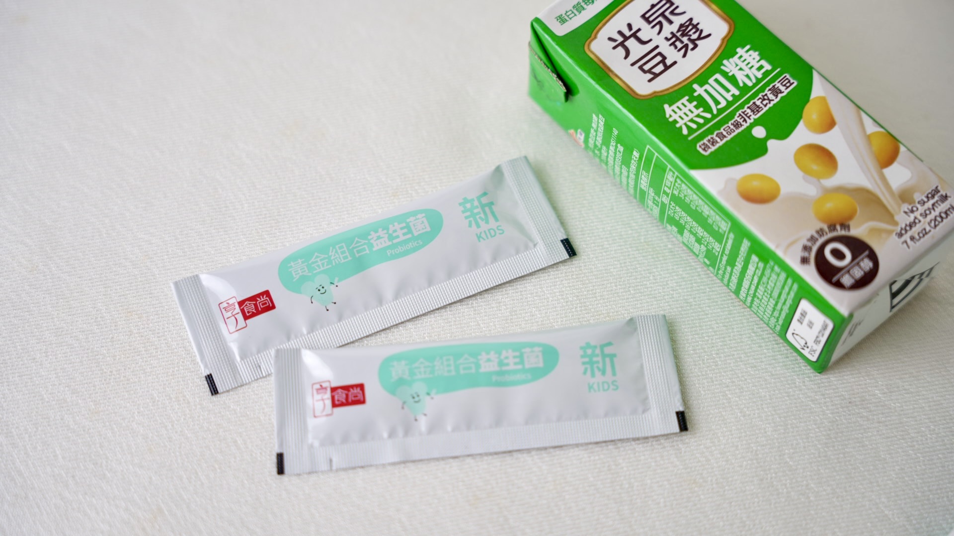 當然也可以將益生菌加入冷水、冷飲中,像是早餐的豆漿、牛奶都可以加,溫馨提醒不能加入超過40°C的飲品中,會破壞益生菌的活性,食用時間沒有規定的時間,我們家是在每天早餐的時間,讓小朋友補充益生菌。
