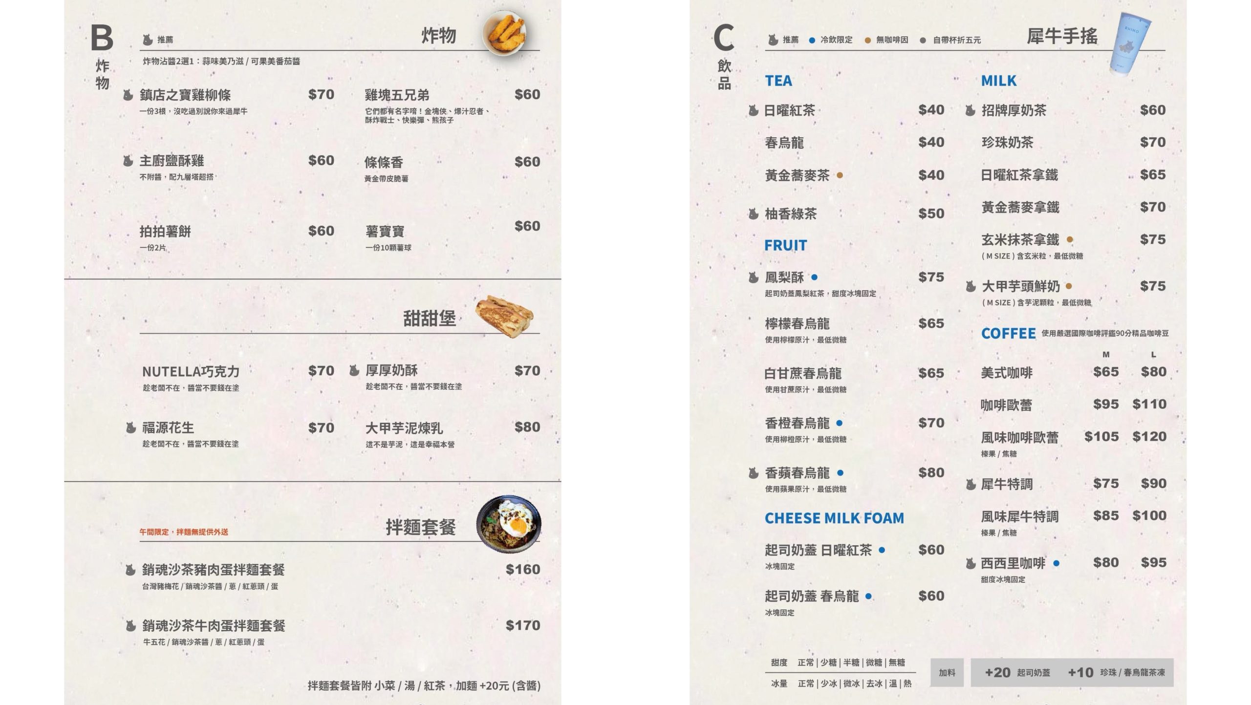 犀牛RHINO茶食|菜單MENU