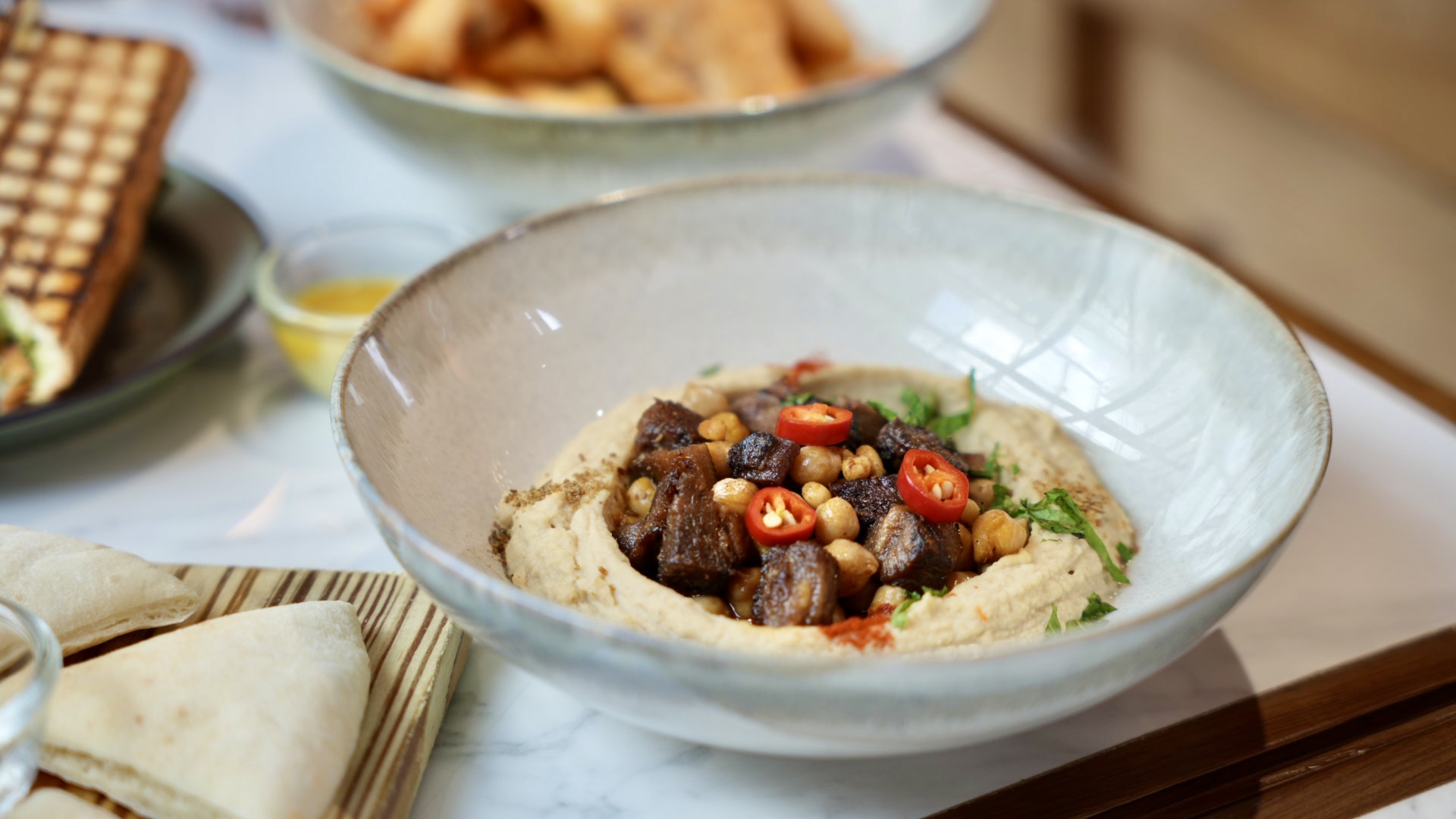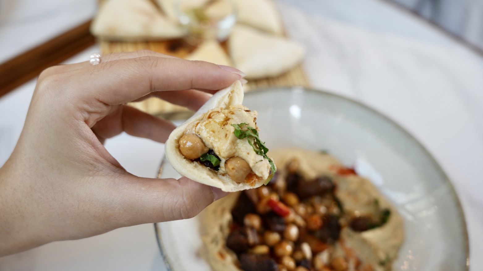 來到吐司利亞可以吃到道地的「HUMMUS 中東胡姆斯」,胡姆斯其實就是鷹嘴豆泥為基底,以前我對鷹嘴豆泥都不感興趣,結果在吐司利亞一吃就愛上,真的超驚艷!!