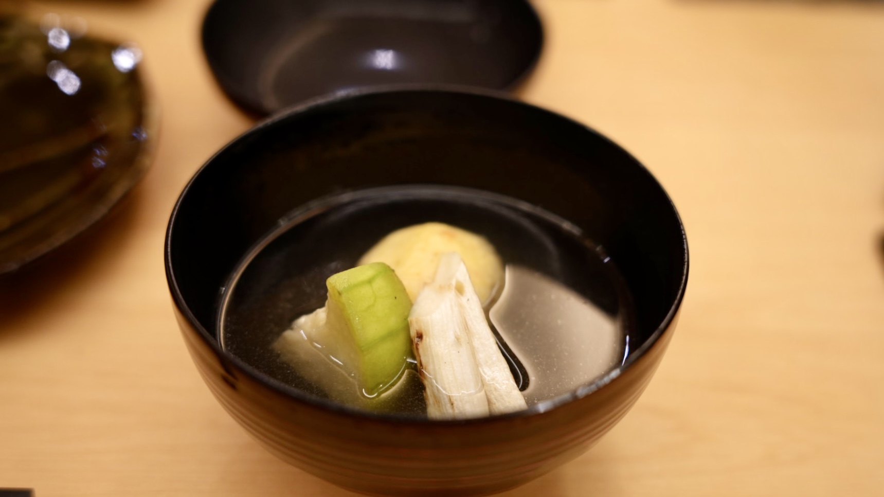 今日的碗物湯底以利尻昆布熬煮而成,有淡淡的鮮味,搭配絲瓜、北海道茭白筍。