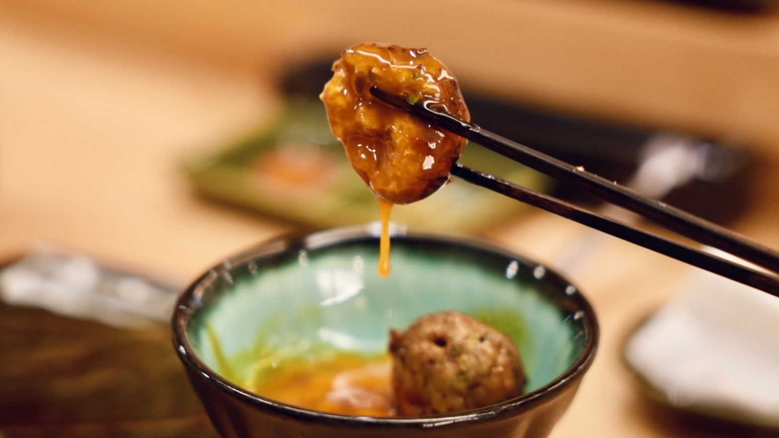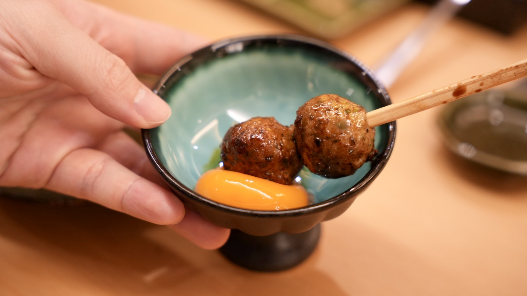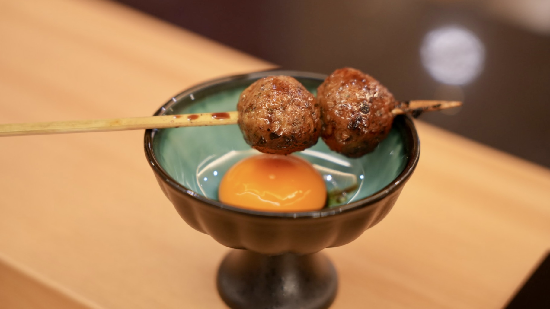 主廚特製的雞肉丸,吃起來外脆內軟,中間有脆口的雞軟骨,很特別的雞肉丸,整顆裹滿醬汁,醬香和炭燒香氣很濃郁,沾著生蛋黃享用,增添了滑嫩清爽的風味。