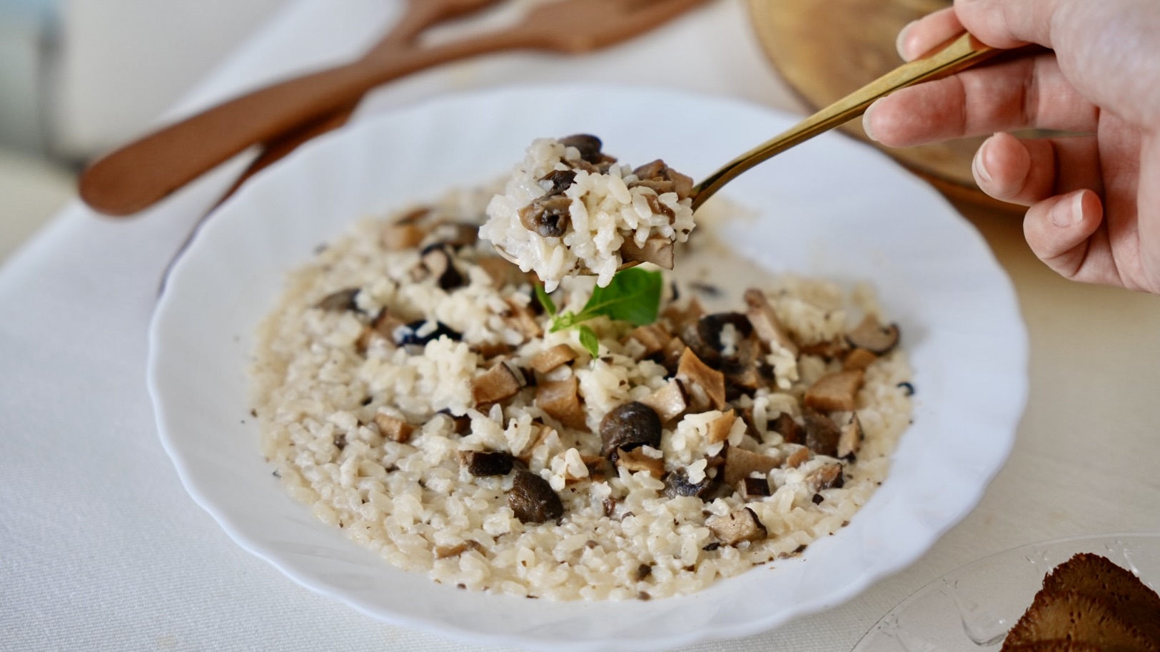 我們家小朋友最愛的「黑鑽松露野菇燉飯」,最特別的是吃起來像奶油燉飯,但是其實是無添加奶油,是純素可食的燉飯唷!