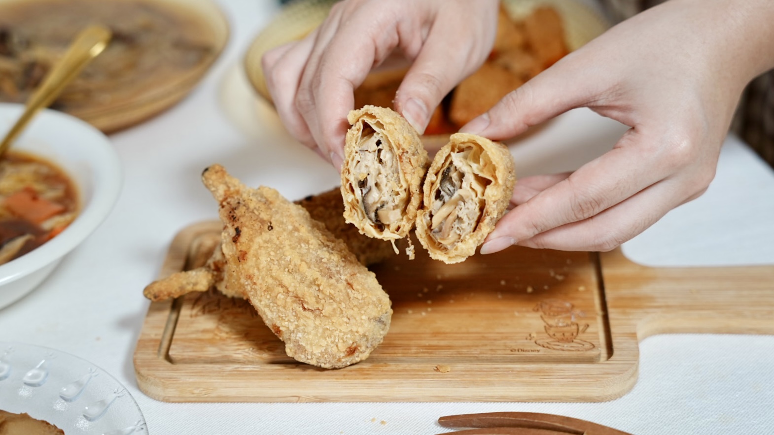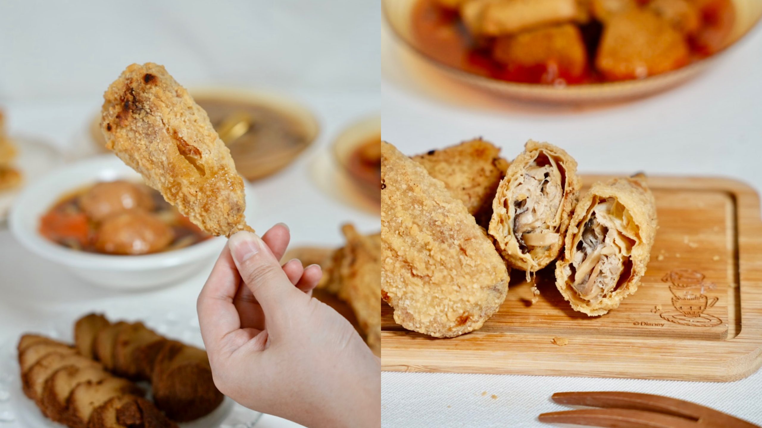金黃酥脆的外皮很薄,中間是滿滿的杏鮑菇,使用帝王級杏鮑菇製成,很Juicy的口感,吃起來還真的有點像炸雞腿!